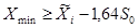 В.16 Минимальное значение результатов испытания двух образцов (n = 2) в каждой партии, подвергаемой контролю, должно быть не менее значения Xmin, определяемого по формуле (В.2).