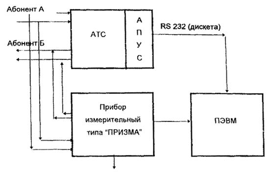 Прибор «ПРИЗМА» представляет собой программно-аппаратный комплекс, сопряженный с ПЭВМ PC AT, и предназначенный для генерации потока контрольных телефонных вызовов с калиброванной длительностью телефонного соединения. В приборе предусмотрена поддержка канала связи с ПЭВМ АПУС и реализован встроенный аппарат сбора и обработки результатов поверки АПУС.
