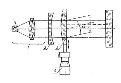 Примечание. Значение угла a, рад., на который изменит свое направление пучок лучей при перемещении линзы, определяют по формуле a = l / f где l - перемещение линзы в направлении, перпендикулярном ходу лучей, мм; f - фокусное расстояние линзы, мм.