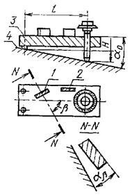 где a - угол подъема измерительной линейки относительно горизонтального положения; h - размер меры 4 или блока концевых мер; L - базовая длина экзаменатора.