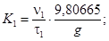 Вычисляем по формулам (2) и (3) значения постоянных K1 и K2, равные соответственно 0,014817 и 0,014828 мм2/с2, с учетом поправки на ускорение свободного падения