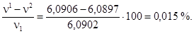 Постоянная K определена по двум градуировочным жидкостям, значения кинематической вязкости которых n1 = 6,0902 мм2/с и n2 = 3,5266 мм2/с; получены следующие результаты измерения времени истечения каждой градуировочной жидкости: