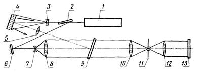 линзой 10 фокусируют в точку параллельный пучок, образованный коллиматором (7, 8) и прошедший через фотопластинку 9;