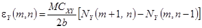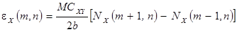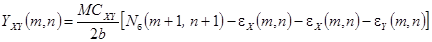 3.2.2. Проекции U(m, п) и V(m, п) смешения на направления осей X и Y соответственно в узле координатной сетки с номером (т, п) определяют по формулам: