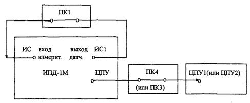 Между выходом «ИС1» датчика и входом ИС измерителя подключить кабельную перемычку ПК1, а к выходу ЦПУ через кабельную перемычку ПК5 или ПК4 - цифропечатающее устройство ЦПУ1 или ЦПУ2.