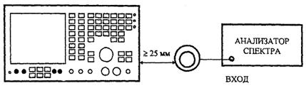 Подсоединить нагрузку (50 ± 1) Ом к разъему BNC поверяемого прибора, а датчик поля - к анализатору спектра, как показано на рисунке 61.
