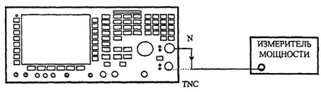 6.7.2.3 Для определения линейности изменения уровня выходного сигнала подсоединить измеритель мощности к N разъему поверяемого прибора, как показано на рисунке 57.