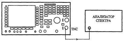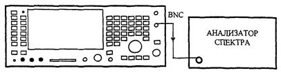 6.7.2.7 Для определения уровня гармонических составляющих подсоединить анализатор спектра к BNC разъему поверяемого прибора, как показано на рисунке 60.
