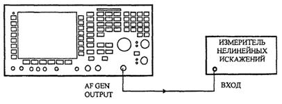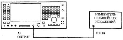 6.7.7.1 Для определения погрешностей измерения нелинейных искажений и SINAD соединить разъемы AF INPUT и AF GEN OUT поверяемого прибора