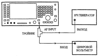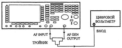 6.7.6.1 Для определения погрешности измерения напряжения ко входу AF INPUT поверяемого прибора подключить калибратор напряжений постоянного и переменного тока..