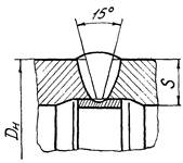 12. Плавный переход по внутренней поверхности в месте стыка труб между собой или с деталями допускается обеспечивать методом раздачи (черт. 8), конусной или цилиндрической расточек деталей с меньшим внутренним диаметром (черт. 9) под углом не более 15°.