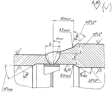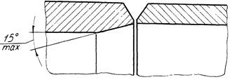 15. При сварке с трубами литых, кованых, штампованных и штампо-сварных деталей и арматуры, плавный переход от одного сечения к другому должен обеспечиваться комбинированно: за счет утонения стенки конца элемента с большей толщиной стенки до расчетного значения на кромке и за счет наклонного расположения поверхности сварного шва со стороны раскрытия кромок.