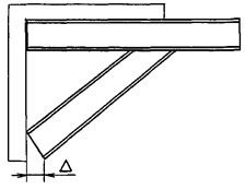 Неперпендикулярность рабочего торца кронштейна и смещение подкоса от вертикали D: |