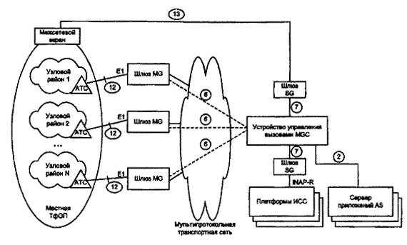 - шлюз сигнализации (SG - Signaling Gateway), реализующий функции взаимодействия устройств, входящих в состав гибкого коммутатора с сетью ОКС № 7;