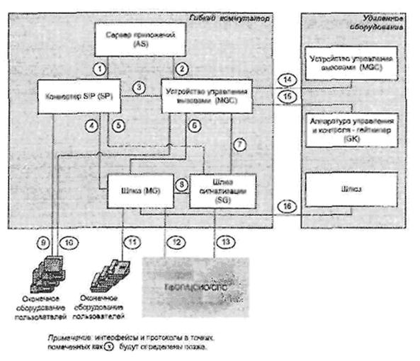 - устройство управления вызовами (MGC - Media Gateway Controller), реализующее функции управления устройствами, входящими в состав гибкого коммутатора;