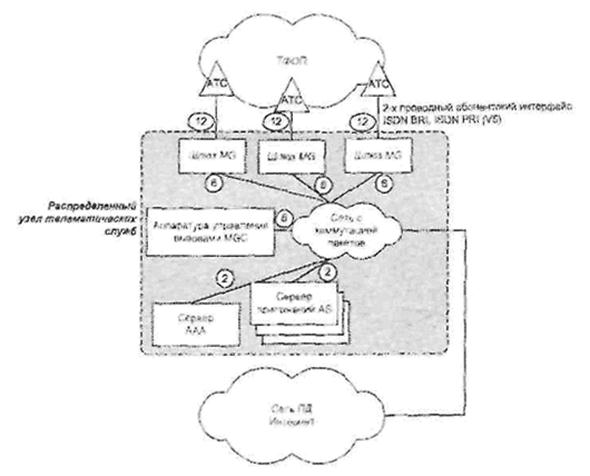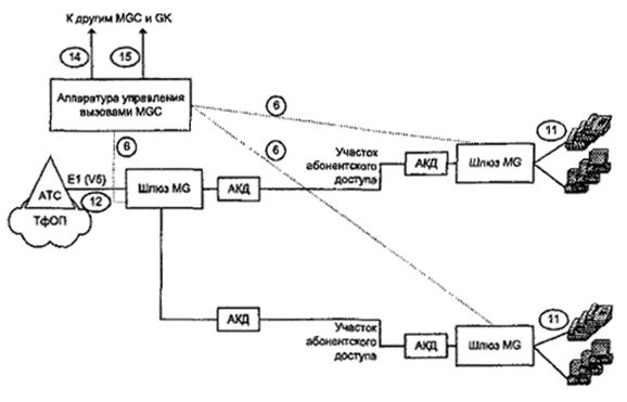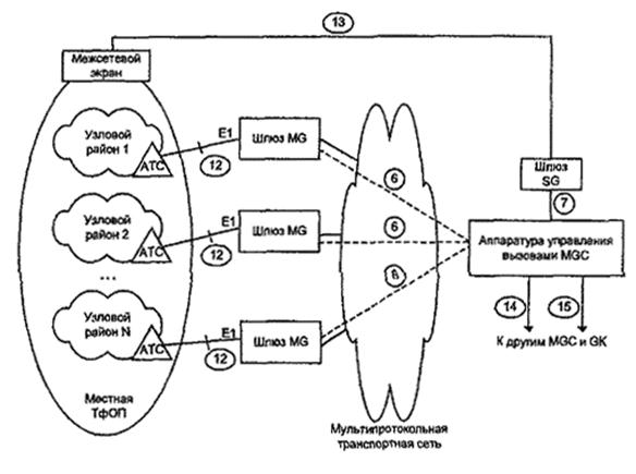 - шлюз (MG - Media Gateway), реализующий функции преобразования речевой информации в пакеты IP; взаимодействия с ТфОП; маршрутизации пакетов IP;