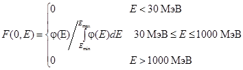 F(0,Е) - плотность пространственно-энергетического распределения по флюенсу на поверхности слоя, нормированная на единичный флюенс,