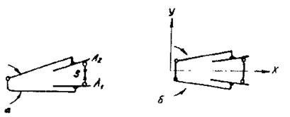 4. Выбор параметров рабочих элементов и диапазона раскрытия схвата. Рабочие элементы ромбического схвата имеют четыре основных размера: a - толщину, b - ширину, c - длину по оси X и a - угол раскрытия рабочего элемента, показанные на рис. П5.2. Толщина рабочего элемента выбирается из условий прочности и жесткости с учетом особенностей технологии изготовления. Ширина b должна обеспечивать распределение точек базирования по оси z в соответствии со схемой базирования, в рассматриваемом примере она должна быть равна 20 мм.