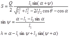 7. Выбор схемы и расчет параметров механизма передачи. Схемы механизмов передачи представлены в табл. 5.1 раздела 5. Требуемое поступательное перемещение рабочих элементов схвата по прямой обеспечивают схемы 6, 7 и 9. Из этих схем выбирается схема 6, имеющая возрастающую зависимость усилия захватывания от величины раскрытия схвата. Ограничения сверху на усилие захватывания вводятся из условий прочности объектов. Так, для ампул усилие захватывания не должно превосходить 60 Н, но в то же время быть не менее 5 Н. Для колбы усилие захватывания должно быть не менее 100 Н и не более 500 Н. Традиционными методами выбираются параметры механизма передачи (см. схему 6 табл. 5.1): длина рычага l1, его начальное и конечное положения так, чтобы обеспечить на диапазоне перемещения рабочих элементов DН требуемое изменение усилия захватывания. Выбор l1 = 48 мм обеспечивает захватывание ампулы с усилием захватывания, равным 36 Н (при значении угла b = 17 град), и колбы с усилием захватывания, равным 155 Н (при значении угла b = 52 град). Максимальному значению раскрытия схвата соответствует b = 73 град.