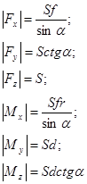 Проектируя вектора смещений точек контакта на соответствующие нормали к поверхностям рабочих элементов (т.е. умножая уравнения скалярно на орты ni) и приравнивая к нормальным составляющим DUi перемещений в точках контакта, строят систему уравнений: