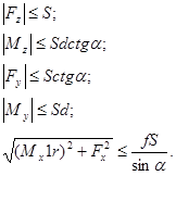 Предельно допустимые значения приложенных сил и моментов, Н, Нм |