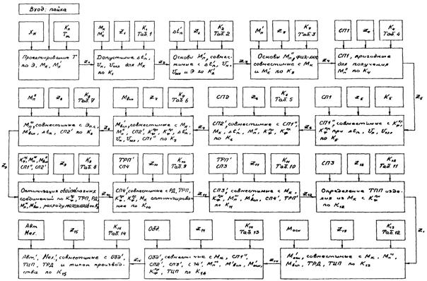 3.1. Информационная модель проектирования технологии пайки приведена на рис. 2. В основу поиска оптимальной технологии положен декомпозиционный алгоритм, реализуемый в 15 этапов (Z1, Z2, ... Z15). На каждом следующем этапе происходит целенаправленное сужение области допустимых решений с помощью соответствующих ограничений (частных критериев K1, ..., K15).