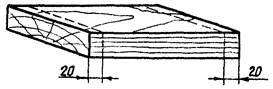 2.1. Образцы для лабораторных испытаний изготавливают из заготовок модифицированной древесины по ГОСТ 9629-81, обрезанных по торцам не менее, чем на 20 мм (черт. 1).