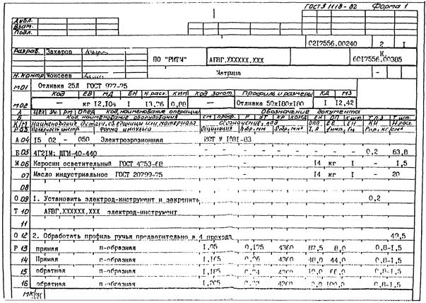2. При описании технологических процессов (операций) электрофизических и электрохимических методов обработки применяют формы маршрутных карт (МК) по ГОСТ 3.1118-82, выполняющих функции следующих видов документов: