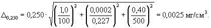 Расчет предела возможных значений погрешности приготовления аттестованного раствора сульфат-ионов с массовой концентрацией 0,250 мг/см3 выполняют по формуле