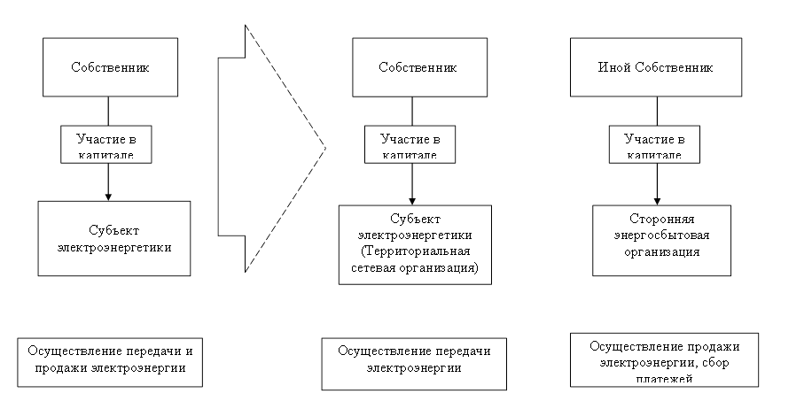 В целях обеспечения реализации вышеуказанных требований с 1 апреля 2006 года также не допускается одновременно иметь на праве собственности или на ином предусмотренном федеральными законами основании имущество, непосредственно используемое при осуществлении деятельности по передаче электрической энергии и оперативно-диспетчерскому управлению в электроэнергетике, и имущество, непосредственно используемое при осуществлении деятельности по производству и купле-продаже электрической энергии.
