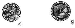 а - с секторными рабочими жилами и круглой нулевой жилой;