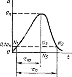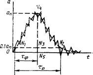 Длительность действия ударного ускорения tп и длительность переднего фронта ударного ускорения tф определяют на условном нулевом уровне равным +0,1ап.