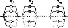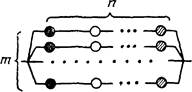 Объект состоит из т последовательно соединенных подсистем, i-я подсистема состоит из ni параллельно соединенных однотипных элементов. Отказ объекта наступает при отказе любой подсистемы |