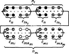 Объект состоит из т последовательно соединенных подсистем, (i-я подсистема состоит из ni разнотипных параллельно соединенных элементов. Отказ объекта наступает при отказе любой подсистемы |