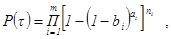 Объект состоит из параллельно соединенных элементов т типов по n1, n2,…, nт элементов каждого типа. Отказ объекта наступает при отказе всех элементов |