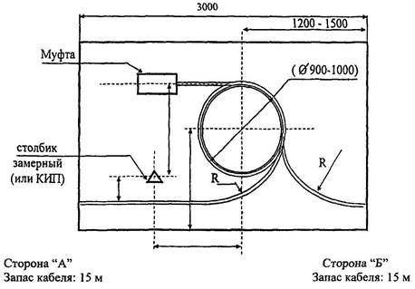 Маркер на оболочке кабеля установлен перед муфтой: со стороны А: _____ м, со стороны Б: _____ м. Запас кабеля в котловане со стороны А: _____ м, со стороны Б: _____ м.