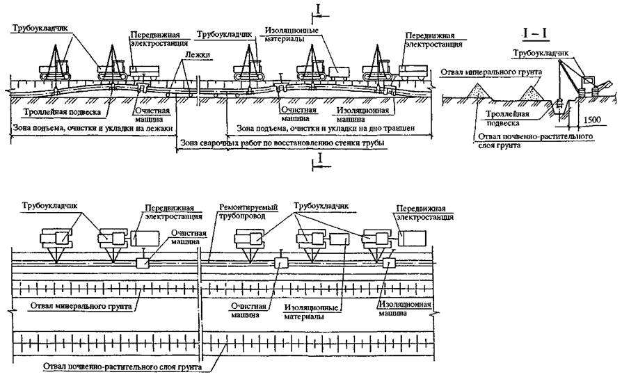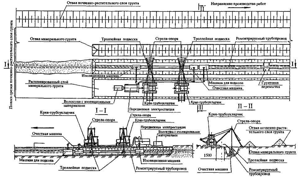 2.2.3 При капитальном ремонте с заменой труб путем демонтажа заменяемого трубопровода и укладки нового в прежнее проектное положение технологические операции выполняются в два этапа.