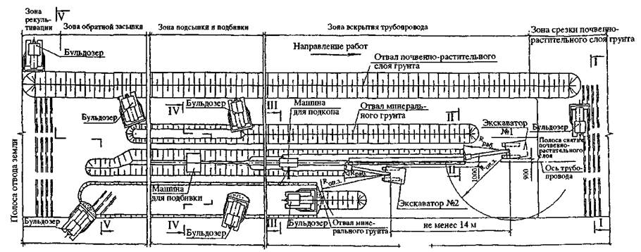 2.2.2 При капитальном ремонте с заменой труб путем укладки вновь прокладываемого трубопровода в отдельную траншею в пределах существующего технического коридора коммуникаций технологические операции выполняются в два этапа.