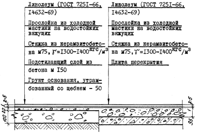 2. Толщина стяжки из керамзитобетона по перекрытию принята, исходя из общей толщины чистого пола 100 мм. При меньшей общей толщине пола слой стяжки соответственно уменьшается.