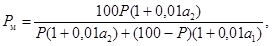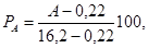 14.7.2 Используя 0,22 % массовой доли азота в джутовом волокне и 16,2 % массовой доли азота в животном волокне (оба являются показателями сухой массы волокна), вычисляют массовую долю животного волокна в чистой сухой пробе смеси РА, %, по формуле