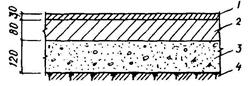 1.4. Конструкция пола двухслойная (теплоизоляционный слой и покрытие), основание щебеночное, пропитанное битумом, на грунтовой или песчаной подготовке (прил. 1) или бетонное.