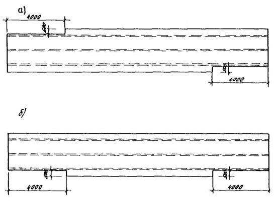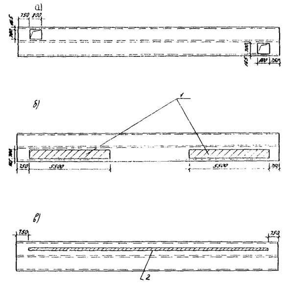 Для зданий промышленных предприятий коробчатые настилы рекомендуются номинальной длины 18000 мм, двухпустотными, сечением 2000×900 мм, с консольными свесами верхней полки (по 500 мм) и без них (рис. 1).