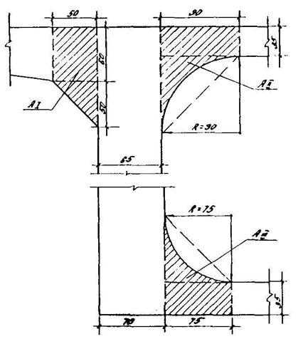 Um - среднее арифметическое величины периметров верхнего и нижнего основания пирамиды, образующейся при продавливании в пределах рабочей высоты сечения полок h0 (h0 = hf + hбетонной подготовки).