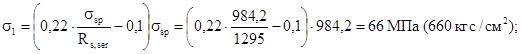 1.21. Величина напряжений в напрягаемой арматуре σsp, контролируемая по окончании натяжения на упоры стенда, принимается равной 0,65 - 0,70 Rs,ser.
