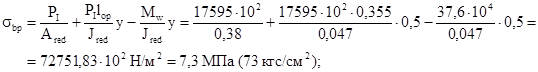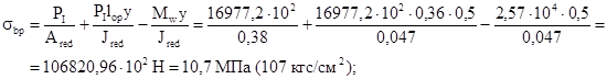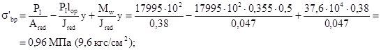 а) для верхней до приобретения бетоном проектной прочности расчет производится в местах установки монтажных петель на совместные воздействия усилий от обжатия напрягаемой арматурой и монтажных нагрузок;