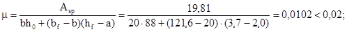 и принимается с учетом указаний п. 3.17 СНиП 2.03.01-84. Величина b′f, вводимая в расчет, принимается равной 8 · h′f.