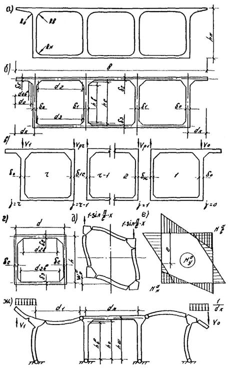 По разделам 1; 3; 4; 6; 11 и расчету по предельным состояниям I и II групп буквенные обозначения усилий от внешних нагрузок и воздействий в поперечном сечении коробчатого настила, характеристик предварительно напряженной конструкции, характеристик материалов, характеристик положения продольной арматуры в поперечном сечении конструкции и геометрических характеристик следует принимать в соответствии со СНиП 2.03.01-84 и «Пособием по проектированию предварительно напряженных железобетонных конструкций из тяжелых и легких бетонов» (М.: ЦИТП, 1986).