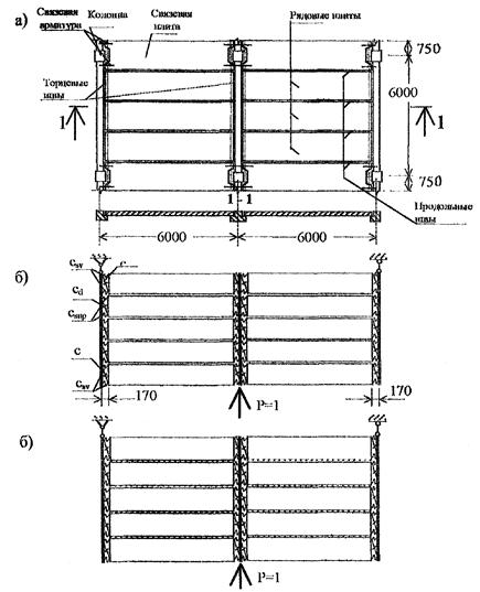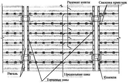 - сплошные продольные шпонки (рис. 8, в) обеспечивают совместную работу плит при вертикальных нагрузках. При возникновении горизонтальных сдвигающих усилий прочность соединения обеспечивается только за счет сцепления бетона шва с плитами.