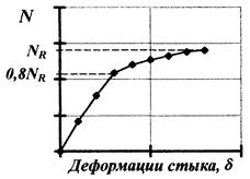 2.2.3. Податливость стыков колонн с ростом нагрузки повышается за счет развития неупругих деформаций в элементах соединения. Интенсивное повышение деформативности стыка проявляется на этапах уровней нагрузки 0,6 - 0,8NR (NR - разрушающая нагрузка).