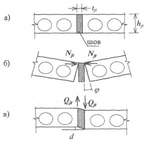 - горизонтальные стыки плит по опорным площадкам с поддерживающими конструкциями (стенами, балками или ригелями рис. 5, а и 5, в).